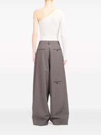 wide-leg tailored trousers Highlights - Grey - Pleat detailing - Side stripe detailing - Belt loops - Concealed front fastening - Two side welt pockets - Two rear welt pockets - Wide leg Made in Italy Composition Polyester 56%, Viscose 44% SIZE & FIT FittingInformation Designed with a wide-leg cut, these trousers allow for a close fit at the waist and offer a loose and roomy fit over the leg Made from a midweight non-stretch fabric