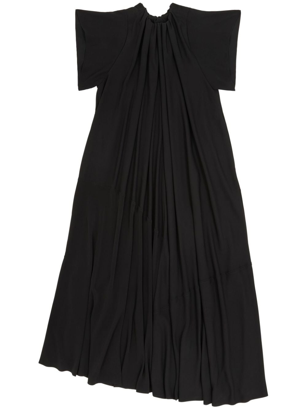 gathered short-sleeve maxi dress Highlights - Black - Gathered detailing - Round neck - Gathered neckline - Short sleeves - Ankle-length - Straight hem Made in Italy Composition Polyester 100% Washing instructions Machine Wash