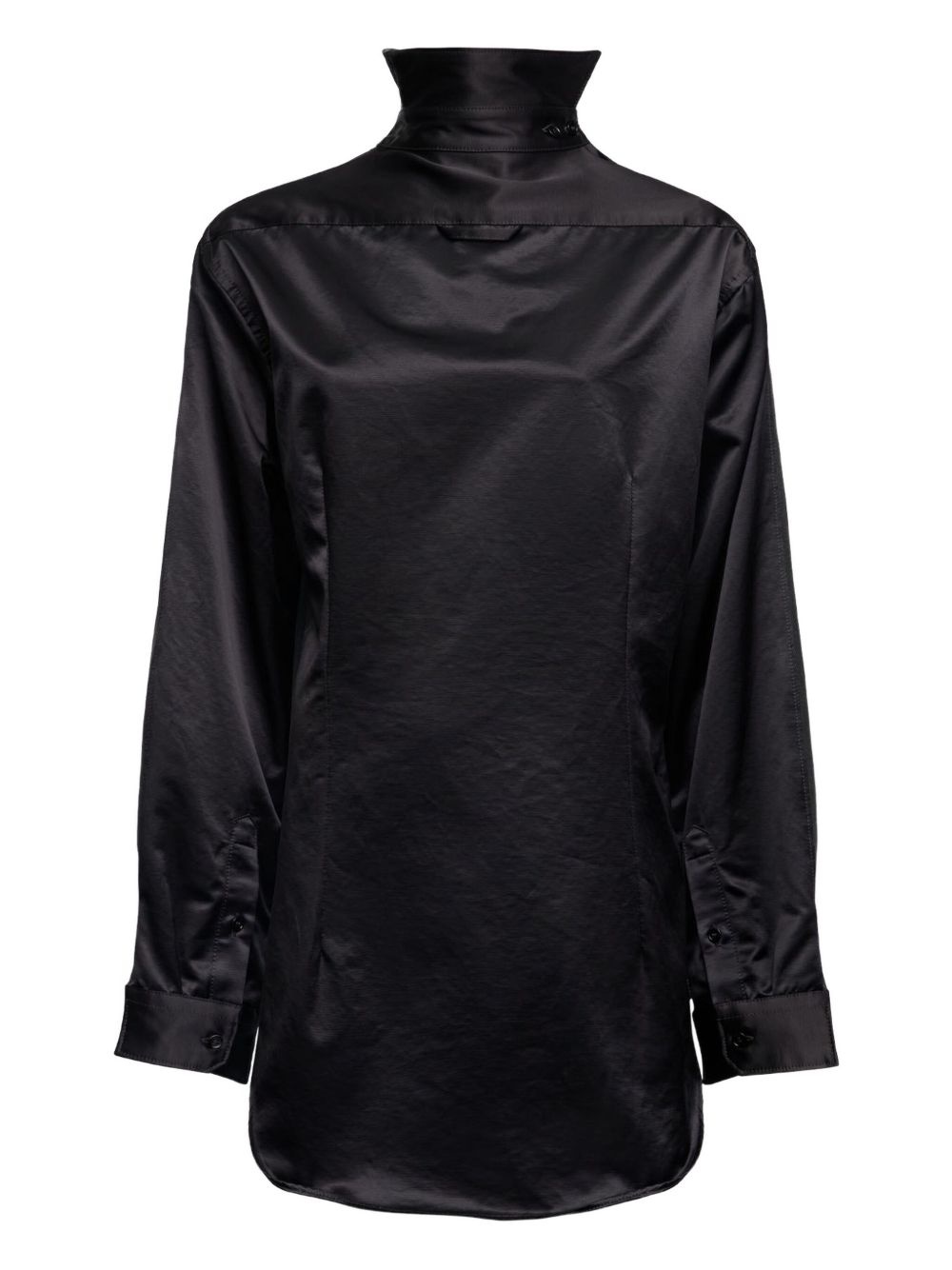 high-neck satin dress Highlights - Black - High neck - Long sleeves - Buttoned cuffs - Smooth finish Made in Italy Composition Cotton 57%, Viscose 43%