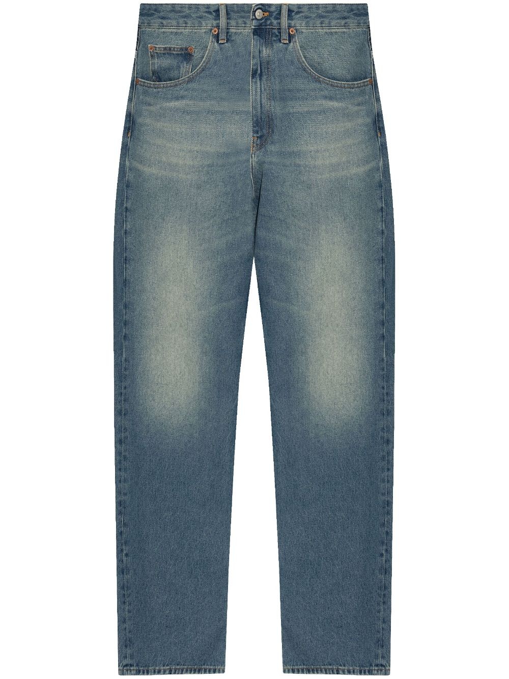 high-rise straight-leg jeans Highlights - Blue - Cotton - Denim - Mid-wash - Faded effect - Logo patch to the rear - High-rise - Belt loops - Front button and zip fastening - Classic five pockets - Straight leg - Long length Made in Italy Composition Cotton 100% Washing instructions Read Manufacturer Guidelines