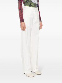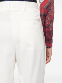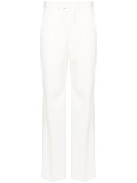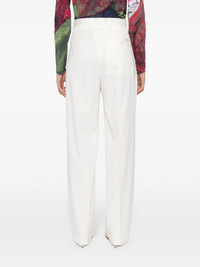 high-waist tailored trousers Highlights - Ivory white - Twill weave - Belt loops - Two side slash pockets - Pressed crease - Rear welt pocket - Rear dart detailing - Signature single-stitch logo - Concealed front button, hook and zip fastening Made in Italy Composition Outer: Polyester 54%, Virgin Wool 44%, Elastane 2% Lining: Viscose 100% SIZE & FIT Model measurements Height 5 ft 9 in(1.76 m) Bust/Chest 31.88 in(81 cm) Hips 35.43 in(90 cm) Waist 24.8 in(63 cm) FittingInformation Designed for a straight-leg fit, these trousers allow for a close fit at the waist and an unrestricted, comfortable fit over the leg Made from a midweight stretch fabric, this piece offers elasticity and flexibility when worn This piece fits true to size – take your usual size Washing instructions Dry Clean Only
