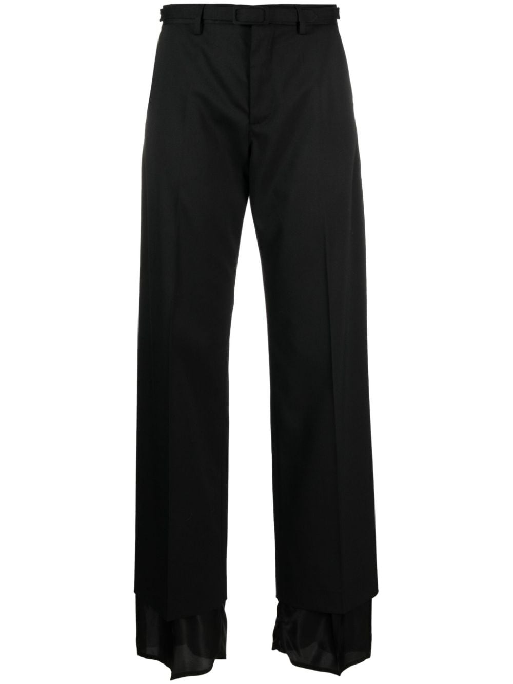 high-waisted flared trousers Highlights - Black - High waist - Wide leg - Flared - Belt loops - Detachable belt - Two side inset pockets Made in Italy Composition Polyester 54%, Virgin Wool 44%, Elastane 2% SIZE & FIT Model measurements Height 5 ft 11 in(1.8 m) Bust/Chest 31.49 in(80 cm) Hips 36.61 in(93 cm) Waist 24.4 in(62 cm) FittingInformation Designed with a wide-leg cut, these trousers allow for a close fit at the waist and offer a loose and roomy fit over the leg Made from a midweight stretch fabric, this piece offers elasticity and flexibility when worn This piece fits true to size – take your usual size Washing instructions Dry Clean Only