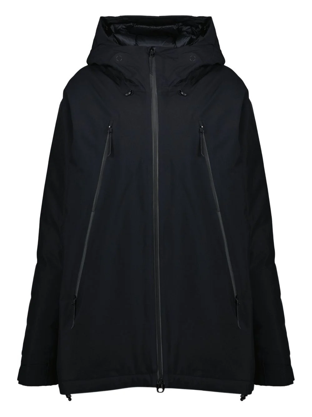 hooded zip-fastening parka Highlights - Black - Long sleeves - Zip fastening - Adjustable hood - Elasticated cuffs - Side zip pockets Imported Composition Outer: Polyamide 50%, Polyester 50% Washing instructions Read Manufacturer Guidelines