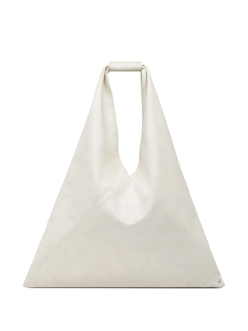 Japanese triangular tote bag Highlights - White - Triangular shape - Top handle - Diagonal seam detail Imported Composition Outer: Polyurethane 100%