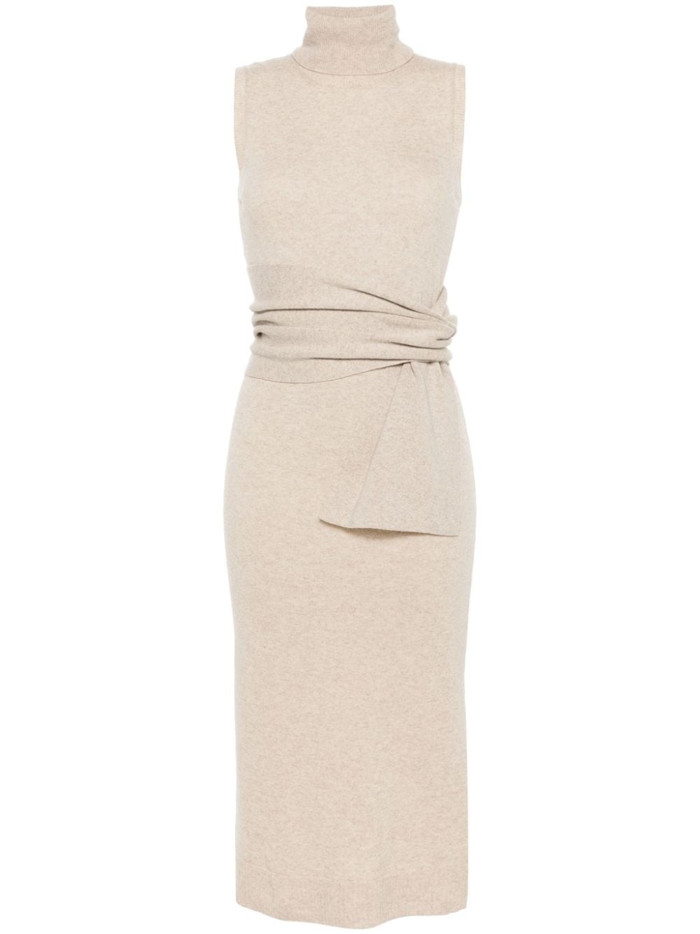 knitted midi dress Highlights - Sand beige - Wool blend - Knitted construction - Roll neck - Sleeveless - Ribbed cuffs and hem - Tied waist - Mid-length - Straight hem Made in Italy Composition Wool 80%, Polyamide 20% SIZE & FIT Model measurements Height 5 ft 10 in(1.78 m) Bust/Chest 33.85 in(86 cm) Hips 36.61 in(93 cm) Waist 26.77 in(68 cm) FittingInformation Designed for a slim fit that sits just away from the body offering a close yet comfortable fit The adjustable tie waist gives a more adaptable and personalised fit Made with a midweight knit, this piece offers some stretch