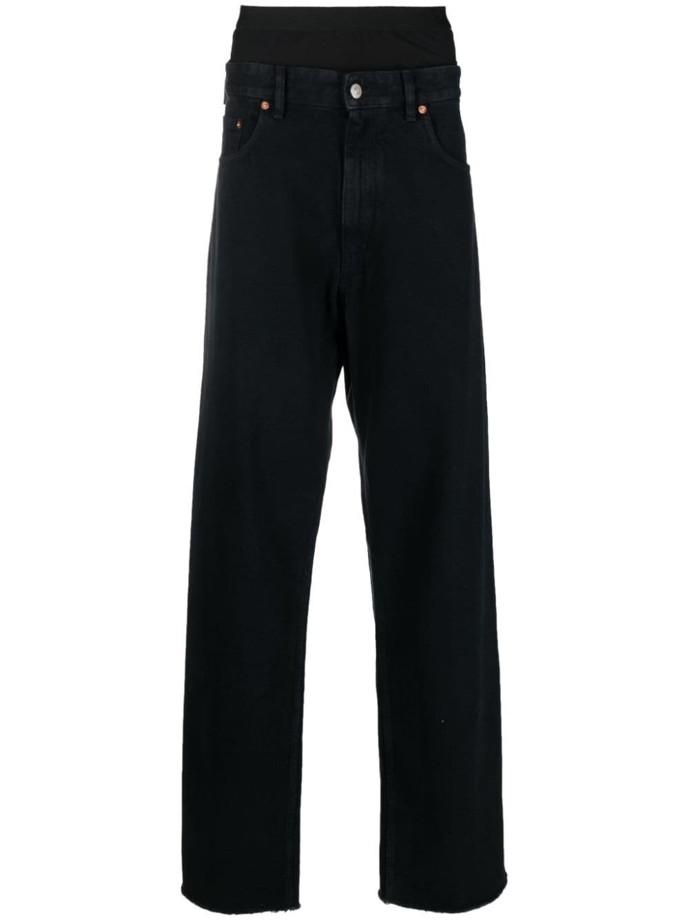 layered-effect straight-leg jeans Highlights - Black - Cotton - Denim - Signature single-stitch logo - Logo patch to the rear - Layered effect - Front button and zip fastening - Belt loops - Classic five pockets - Straight leg Made in Italy Composition Cotton 100% Washing instructions Machine Wash