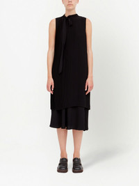 layered sleeveless dress Highlights - Black - Pussy-bow collar - Layered design - Fully pleated - Sleeveless - Asymmetric hem Made in Italy Composition Polyester 100%
