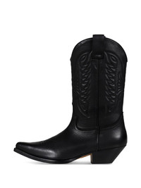 leather boots Highlights - Black - Double pull-tab at the opening - Western style - Low stacked heel Imported Composition Lining: Leather 100% Outer: Leather 100% Sole: Rubber 100%