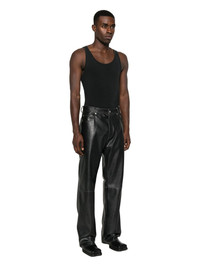 leather-effect five-pocket trousers Highlights - Black - Leather effect - Five pockets - Button fastening - Belt loops Imported Composition Polyester 100% SIZE & FIT Model measurements Height 6 ft 0 in(1.84 m) Bust/Chest 35.82 in(91 cm) Hips 37 in(94 cm) Waist 28.34 in(72 cm) Washing instructions Read Manufacturer Guidelines
