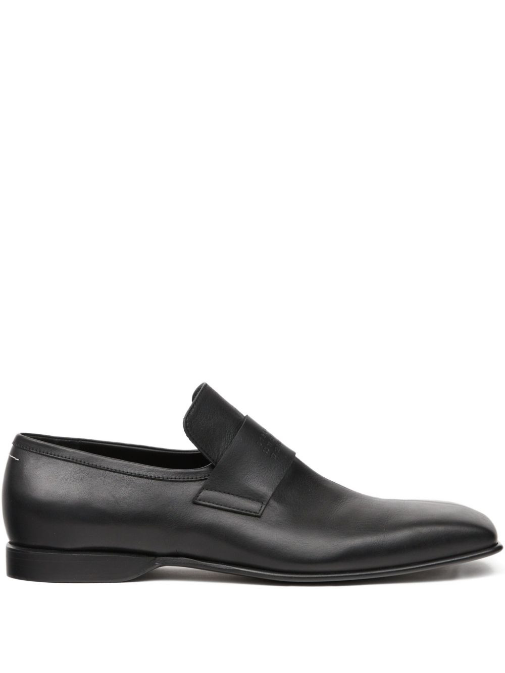 leather loafers Highlights - Black - Smooth finish - Branded strap detail - Square toe - Low stacked heel Made in Italy Composition Sole: Calf Leather 100% Lining: Calf Leather 100% Outer: Calf Leather 100%