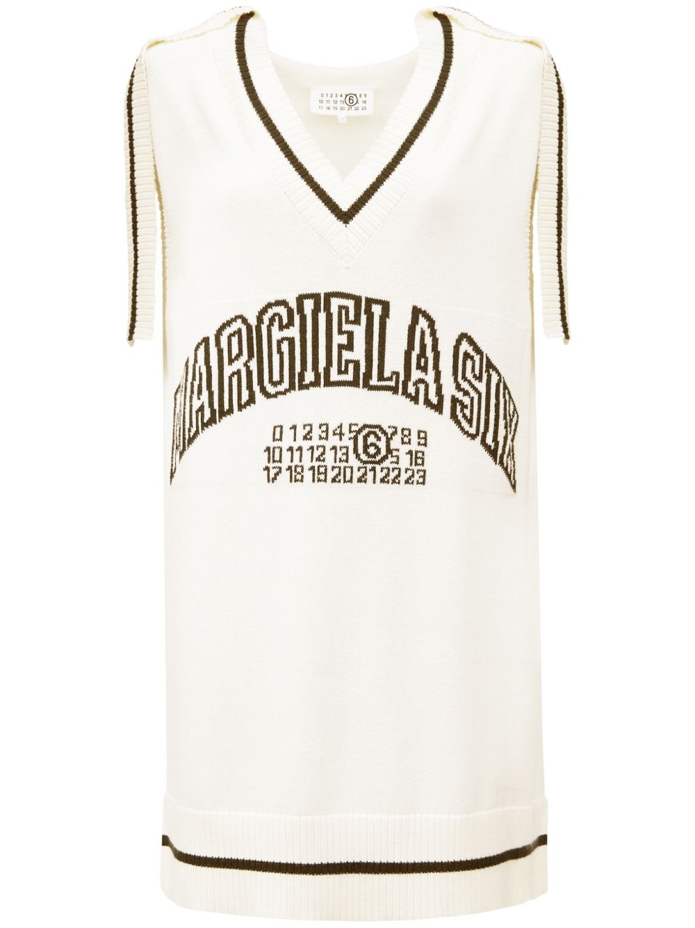 logo-jacquard knit dress Highlights - White/black - Cotton-wool blend - Knitted construction - Jacquard logo motif - V-neck - Contrast stitching - Cap sleeves - Side slits - Straight hem - Thigh-length Imported Composition Cotton 85%, Wool 15%