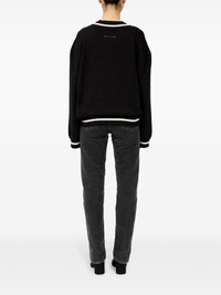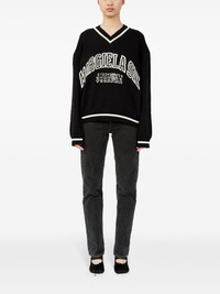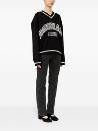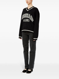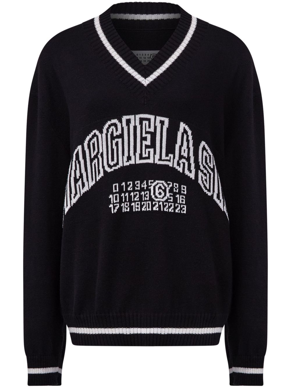 logo-knit v-neck jumper Highlights - Black - V-neck - Signature numbers motif - Striped edge - Ribbed cuffs and hem Imported Composition Cotton 85%, Wool 15%