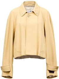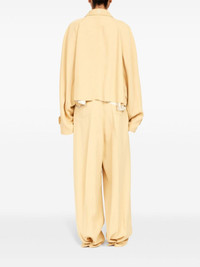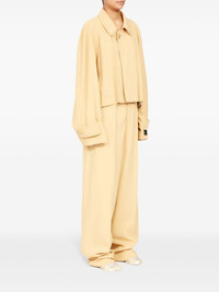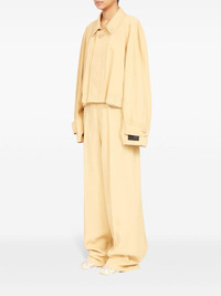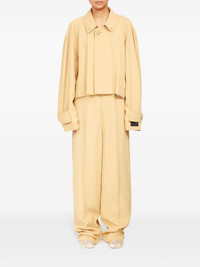 logo-patch oversized jacket Highlights - Butter yellow - Logo patch at the sleeve - Raw-cut hem - Spread collar - Front button and zip fastening - Drop shoulder - Long sleeves - Belted cuffs - Cropped - Curved hem Made in Italy Composition Polyamide 61%, Viscose 39% SIZE & FIT FittingInformation Designed for an oversized fit, offering additional room throughout Made from a midweight non-stretch fabric