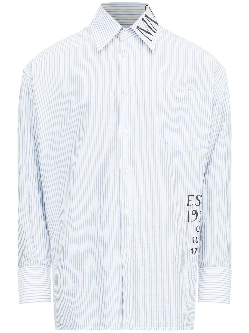 logo-print shirt Highlights - Blue/white - Cotton - Vertical stripe pattern - Front button fastening - Logo print to the side - Chest patch pocket - Classic collar - Long sleeves - Buttoned cuffs - Straight hem Made in Italy Composition Cotton 100%