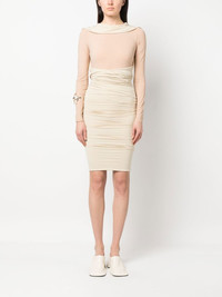 long-sleeve ruched dress light beige tonal design ruched detailing layered effect gathered neckline long sleeves above-knee length Made in Italy Composition Polyamide 86%, Elastane 14% SIZE & FIT Model measurements Height 5 ft 10 in(1.78 m) Bust/Chest 31.49 in(80 cm) Hips 36.22 in(92 cm) Waist 25.59 in(65 cm) Measurement HIPS 23.62 in(60 cm) LENGTH 66.92 in(170 cm) WAIST 23.62 in(60 cm) FittingInformation This piece fits true to size. We recommend you get your regular size Cut for a close fit Made with a mid-weight stretch fabric Washing instructions Dry Clean Only