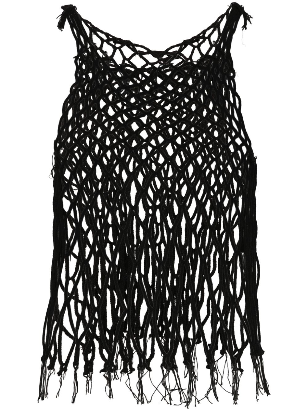 mesh sleeveless tank top Highlights - Black - Cotton blend - Mesh design - Semi-sheer construction - Round neck - Sleeveless - Racerback - Fringed edge - Internal logo tag - Unlined Imported Composition Cotton 70%, Polyester 25%, Other fibres 5% SIZE & FIT Model measurements Height 5 ft 11 in(1.8 m) Bust/Chest 31.49 in(80 cm) Hips 36.22 in(92 cm) Waist 25.59 in(65 cm) FittingInformation Designed for a relaxed fit, this piece allows for comfort and movement when worn Made from a midweight fabric This piece fits true to size – take your usual size Washing instructions Hand Wash