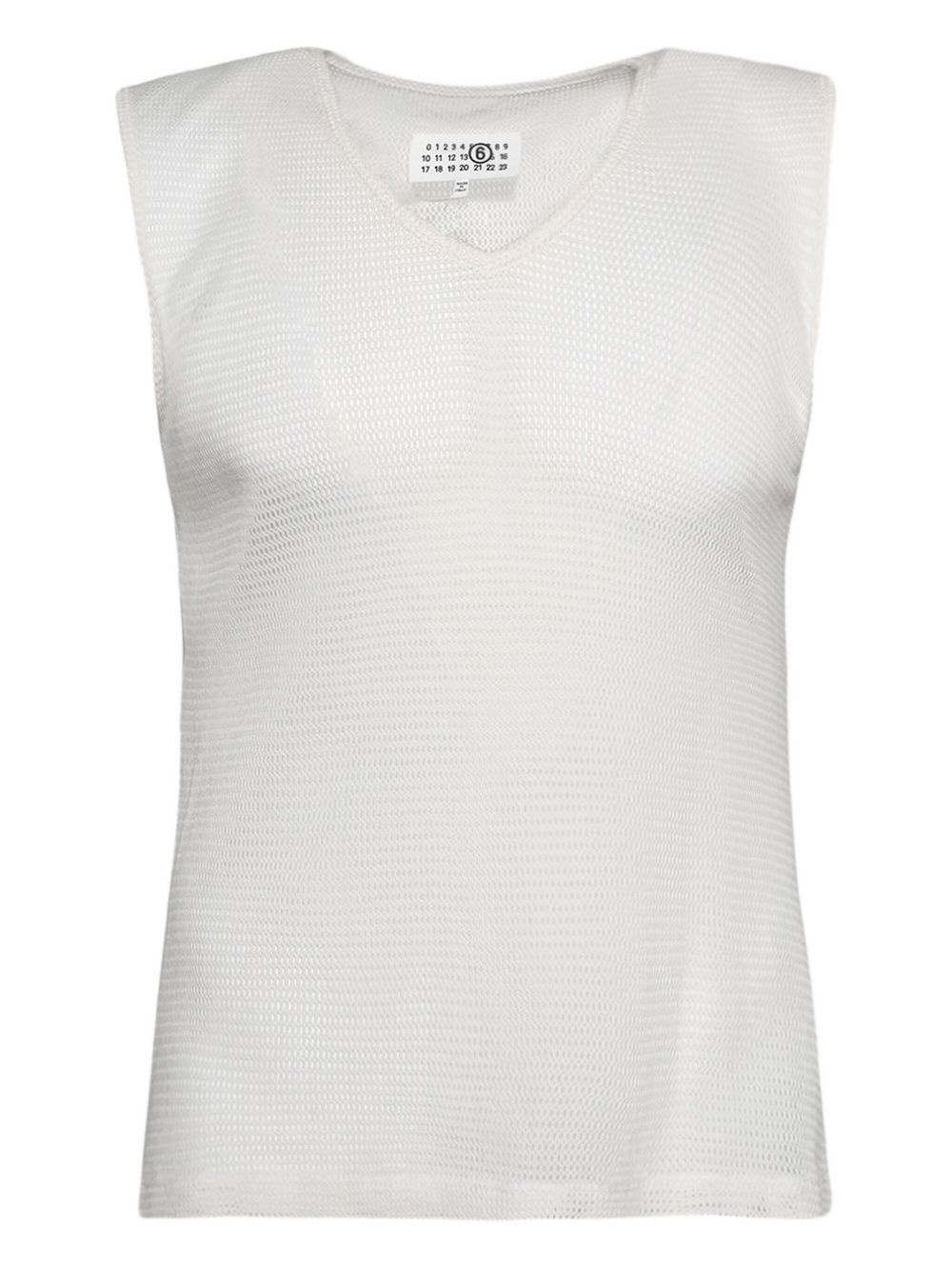mesh tank top Highlights - White - V-neck - Sleeveless - Straight hem Imported Composition Fabric 100%