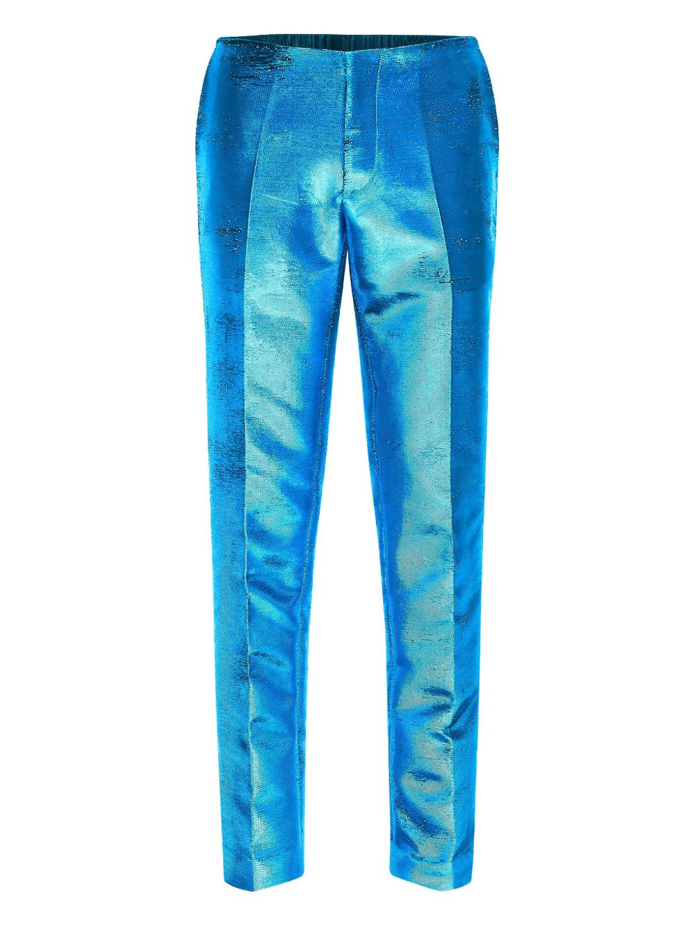 metallic-finish tailored trousers Highlights - Blue - Metallic finish - Pressed creases - Tailored design Made in Italy Composition Acetate 52%, Cotton 32%, Polyester 16% Washing instructions Read Manufacturer Guidelines