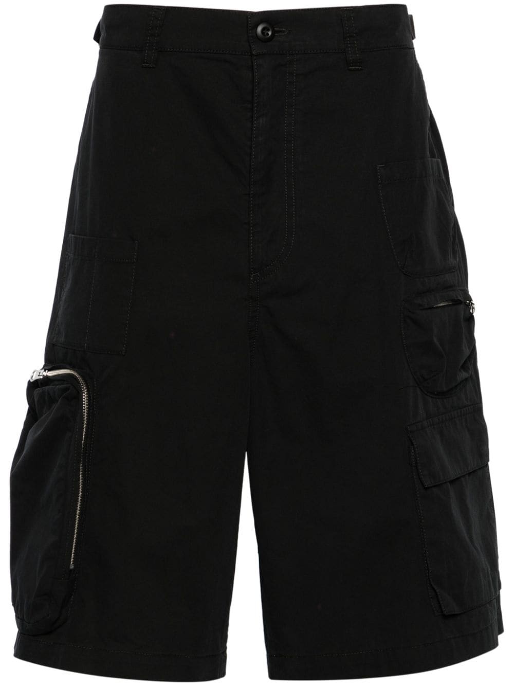 mid-rise cotton cargo shorts Highlights - Black - Cotton - Signature single-stitch logo - Mid-rise - Concealed fly and button fastening - Belt loops - Two diagonal pockets to the sides - Three front patch pockets - Multiple cargo pockets - Two rear jetted pockets - Straight hem Made in Italy Composition Lining: Cotton 100% Outer: Cotton 100% SIZE & FIT Model measurements Height 6 ft 1 in(1.86 m) Bust/Chest 37.4 in(95 cm) Hips 36.22 in(92 cm) Waist 29.52 in(75 cm) FittingInformation Designed with a wide leg, offering a loose and roomy fit The adjustable tabs allow for fitted preferences Made from a midweight non-stretch fabric This piece fits true to size – take your usual size