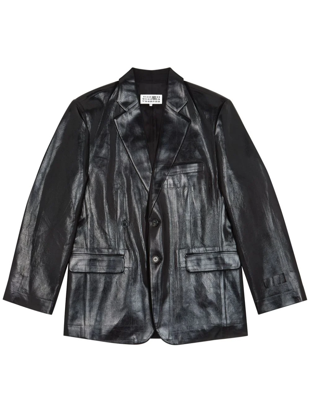 coated single-breasted blazer Highlights - Black - Notched lapels - Front button fastening - Chest welt pocket - Two front flap pockets - Long sleeves - Buttoned-cuff sleeves - Curved hem Made in Italy Composition Outer: Polyester 55%, Virgin Wool 45% Lining: Viscose 100% Washing instructions Read Manufacturer Guidelines