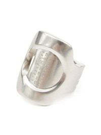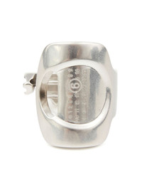 numbers-engraved cut-out ring Highlights - Silver-tone - Brass - Hammered-effect finish - Cut-out detailing - Signature numbers motif - Engraved logo - Midi band - Slip-on style Made in Italy Washing instructions Do Not Wash/Do Not Dry Clean
