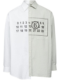 Numbers-motif asymmetric cotton shirt