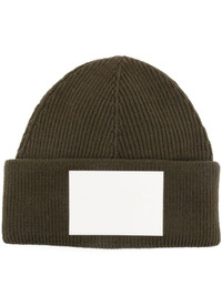 numbers-motif knitted beanie Highlights - Olive green - Virgin wool blend - Knitted construction - Ribbed knit - Round crown - Turn-up wide brim - Signature numbers motif - Pull-on style Made in Italy Composition Virgin Wool 70%, Acrylic 30% Washing instructions Hand Wash