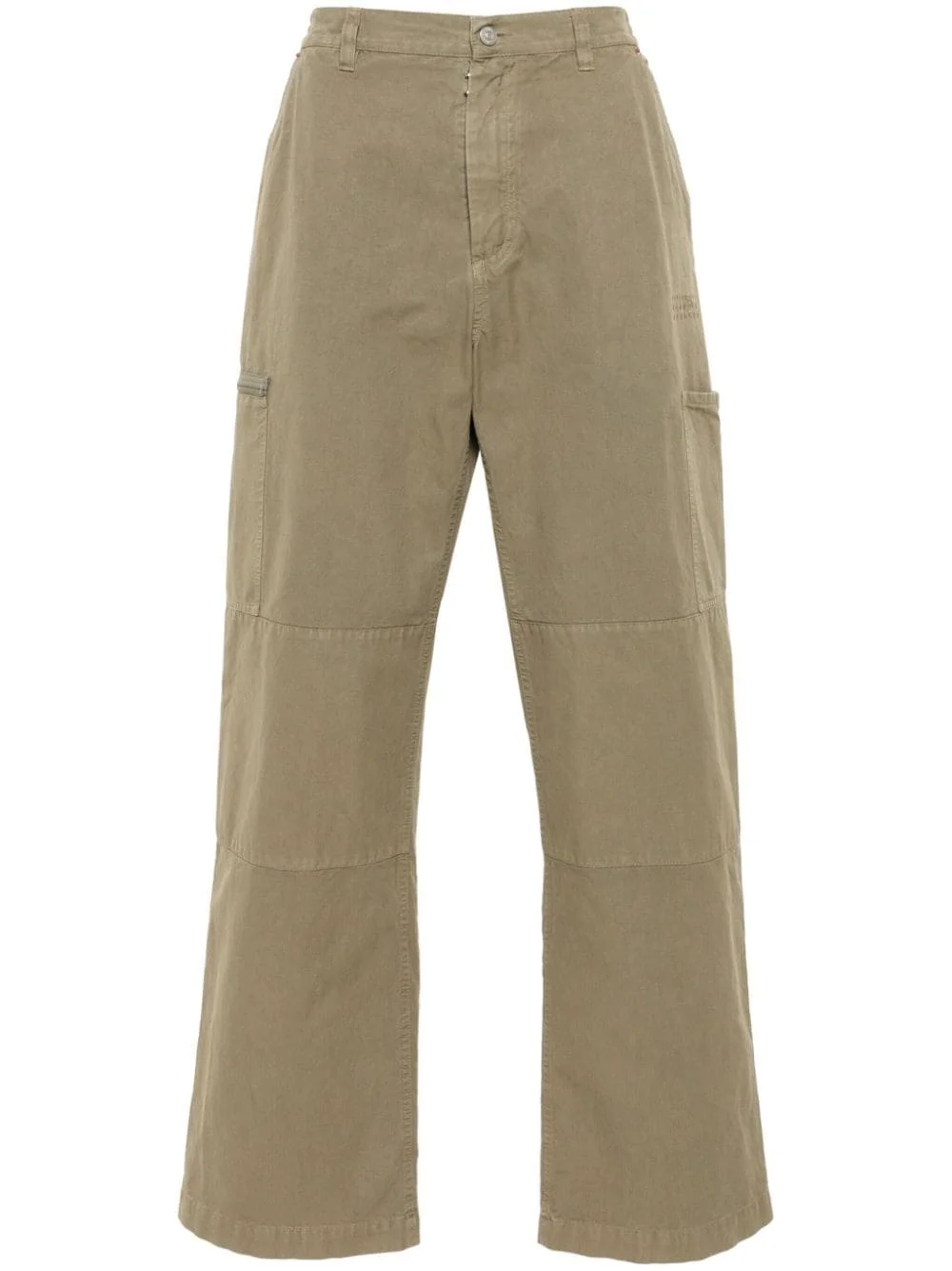 numbers-motif loose trousers Highlights - Khaki green - Cotton - Canvas - Panelled design - Elasticated waistband - Belt loops - Two side slash pockets - Embroidered logo at the leg - Signature numbers motif - Two side patch pockets - Full-length - Signature single-stitch logo to the rear - Rear patch pocket - Wide leg - Front concealed zip-fly and button fastening Made in Italy Composition Outer: Cotton 100% Lining: Cotton 100% SIZE & FIT Model measurements Height 6 ft 2 in(1.87 m) Bust/Chest 31.88 in(81 cm) Hips 33.46 in(85 cm) Waist 25.98 in(66 cm) FittingInformation Designed with a wide leg, offering a loose and roomy fit The partially elasticated waistband offers increased movement and comfort at the waist Made from a midweight non-stretch fabric This piece fits true to size – take your usual size Washing instructions Machine Wash