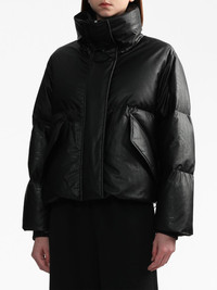 numbers-motif padded jacket Highlights - Black - Feather down - Cotton - Padded design - Embroidered design - Signature numbers motif - High neck - Concealed front fastening - Long sleeves - Two side flap pockets - Straight hem Made in Italy Composition Lining: Polyamide 100%, Polyester 100%, Down 90%, Feather 10% Outer: Viscose 100%, Polyurethane 100%, Cotton 100% SIZE & FIT Measurement SLEEVE LENGTH 24.4 in(62 cm) Shoulder Width 18.89 in(48 cm) LENGTH 24.4 in(62 cm) WAIST 40.94 in(104 cm) BUST 39.37 in(100 cm) Measurement SLEEVE LENGTH 23.62 in(60 cm) Shoulder Width 18.11 in(46 cm) LENGTH 23.62 in(60 cm) WAIST 39.37 in(100 cm) BUST 37.79 in(96 cm) Washing instructions Dry Clean Only