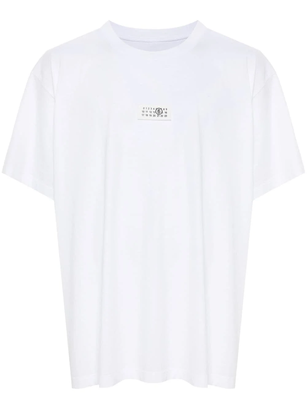 numbers motif-patch cotton T-shirt Highlights - White - Cotton - Jersey texture - Ribbed crew neck - Short sleeves - Signature numbers motif patch at the chest - Signature single-stitch logo at the rear - Straight hem Imported Composition Cotton 100% SIZE & FIT Model measurements Height 6 ft 2 in(1.87 m) Bust/Chest 36.41 in(92.5 cm) Hips 37 in(94 cm) Waist 29.52 in(75 cm) FittingInformation Designed for an oversized fit, offering additional room throughout Made from a midweight non-stretch fabric, this piece offers minimal elasticity when worn This piece fits true to size – take your usual size