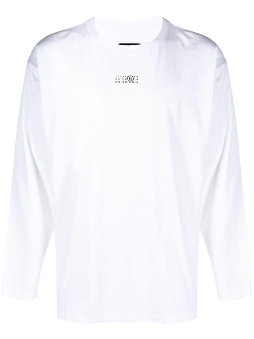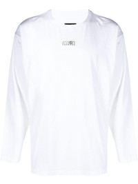 numbers motif-patch long-sleeve T-shirt Highlights - White - Cotton - Soft jersey - Signature numbers motif - Logo patch at the chest - Signature single-stitch logo - Crew neck - Drop shoulder - Long sleeves - Straight hem Imported Composition Cotton 100% SIZE & FIT Model measurements Height 6 ft 2 in(1.89 m) Bust/Chest 37.4 in(95 cm) Hips 35.03 in(89 cm) Waist 27.95 in(71 cm) Measurement CHEST 45.66 in(116 cm) SLEEVE LENGTH 22.04 in(56 cm) LENGTH 27.16 in(69 cm) Shoulder Width 21.25 in(54 cm) FittingInformation Designed for a relaxed fit, this piece allows for comfort and movement when worn Made from a midweight non-stretch fabric, this piece offers minimal elasticity when worn This piece fits true to size – take your usual size