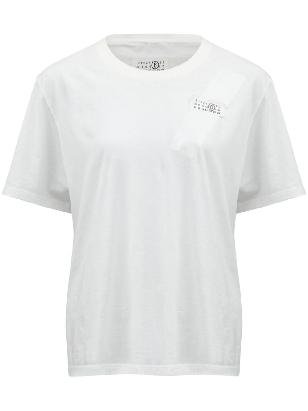 numbers-motif T-shirt Highlights - White - Stretch-cotton - Soft jersey - Crew neck - Drop shoulder - Short sleeves - Signature numbers motif - Straight hem Made in Italy Composition Cotton 98%, Elastane 2% SIZE & FIT Measurement CHEST 40 in(101.6 cm) SLEEVE LENGTH 9.48 in(24.1 cm) LENGTH 24.01 in(61 cm) WAIST 40 in(101.6 cm) Shoulder Width 17 in(43.2 cm) FittingInformation Designed for a relaxed fit, this piece allows for comfort and movement when worn Made from a midweight stretch fabric, this piece offers elasticity and flexibility when worn
