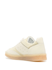 numbers-patch leather snekaers Highlights - Beige - Calf leather - Smooth grain - Almond toe - Perforated detailing - Contrasting panel detail - Signature numbers motif patch at the tongue - Signature single-stitch logo to the rear - Branded leather insole - Rubber sole - Front lace-up fastening - This piece comes complete with a protective dust bag. Made in Italy Composition Sole: Rubber 100% Lining: Calf Leather 100% Outer: Calf Leather 100% SIZE & FIT Measurement HEEL 0.98 in(2.5 cm) Sole height 0.78 in(2 cm)