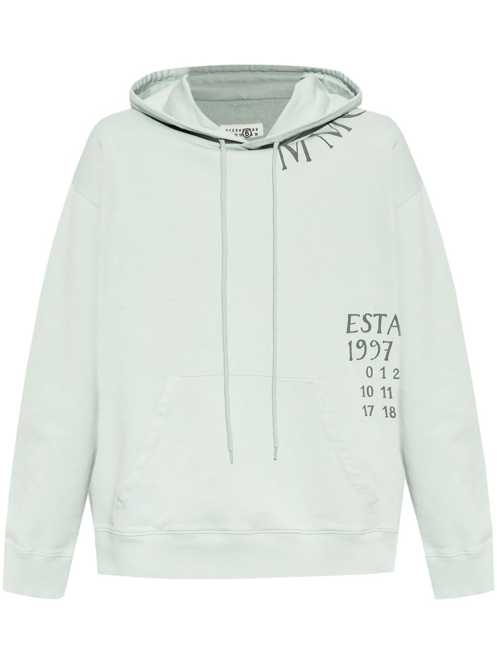 numbers-print hoodie Highlights - Light blue - Drawstring hood - Front pouch pocket - Logo print to the side - Drop shoulder Imported Composition Cotton 100% SIZE & FIT FittingInformation Designed to be unstructured, offering a loose fit throughout Made from a midweight non-stretch fabric, this piece offers minimal elasticity when worn Washing instructions Read Manufacturer Guidelines