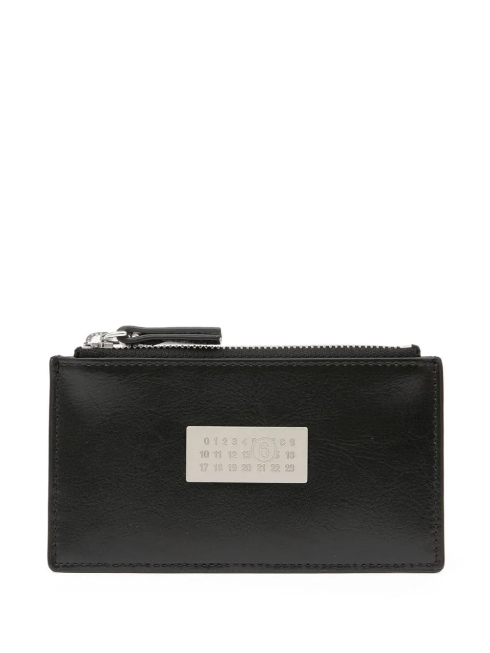 Numeric leather wallet Highlights - Black - Calf leather - Signature numbers motif - Top zip fastening - Note compartment - Rear card slots Made in Italy Composition Outer: Calf Leather 100%, Polyurethane 76%, Polyester 17%, Rayon 7% SIZE & FIT Measurement LENGTH 5.11 in(13 cm) WIDTH 2.75 in(7 cm)
