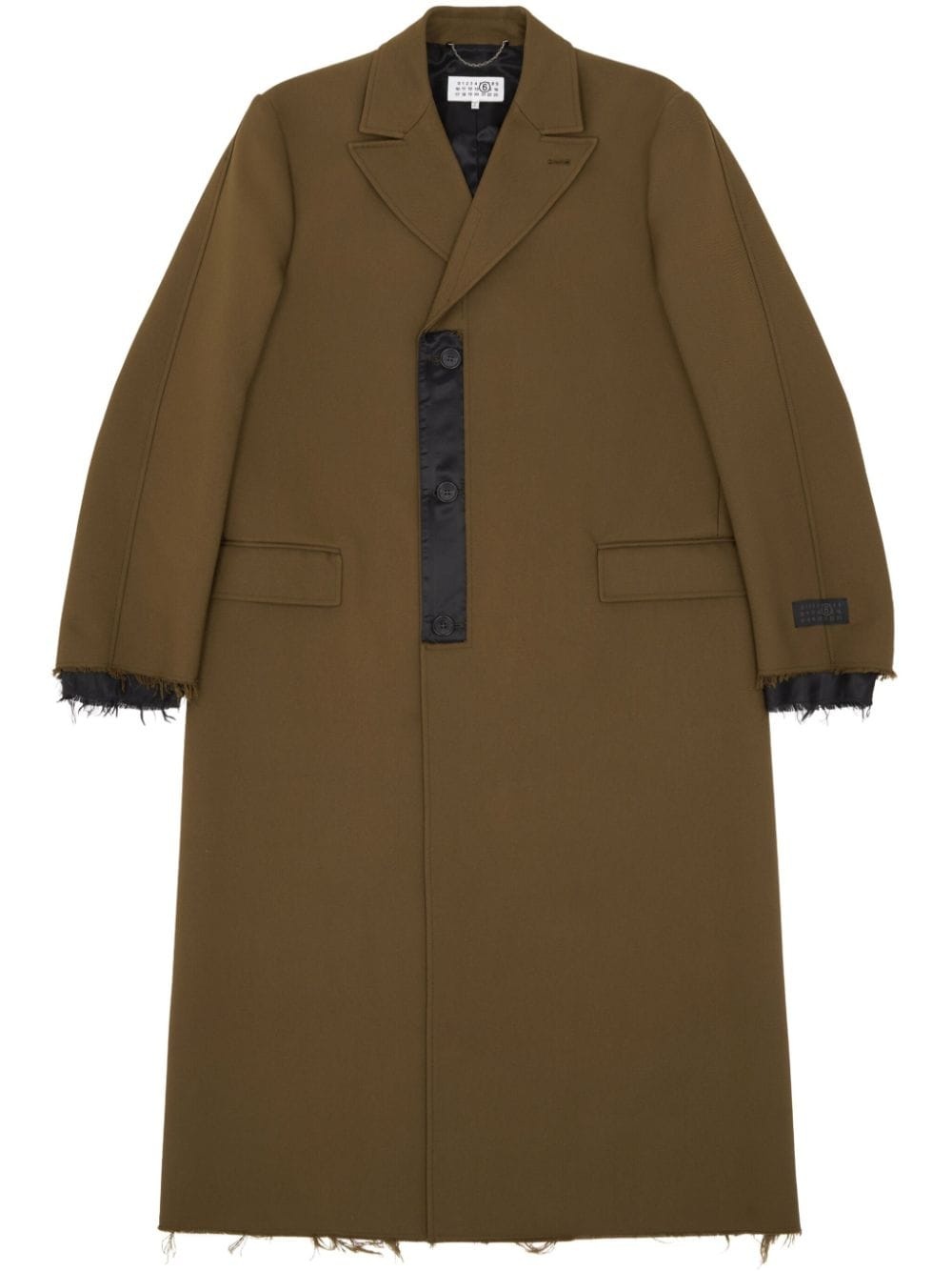 Numeric Signature single-breasted coat Highlights - Khaki - Front button fastening - Notched lapels - Long sleeves - Two front flap pockets - Signature numbers motif - Raw-cut edge - Long length Made in Italy Composition Lining: Viscose 100% Outer: Polyester 100%