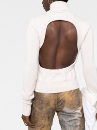 open-back roll-neck top MM6 Maison Margiela presents a twist on a classic silhouette with this roll-neck jumper. Constructed from warm wool into a ribbed finish, this design features an open-back for a contemporary touch. Made in Italy Composition Wool 100% SIZE & FIT Model measurements Height 5 ft 10 in(1.77 m) Bust/Chest 32.28 in(82 cm) Hips 35.03 in(89 cm) Waist 25.19 in(64 cm) FittingInformation This piece fits true to size. We recommend you get your regular size Cut for a slim fit Made with a mid-weight fabric Washing instructions Hand Wash