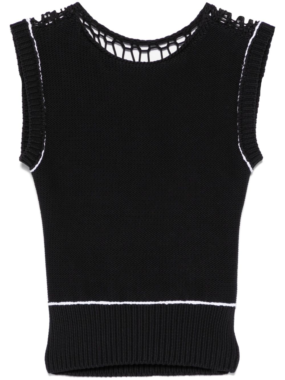 open-knit vest Highlights - Black - Crew neck - Sleeveless - Ribbed detailing Imported Composition Cotton 100% Washing instructions Hand Wash