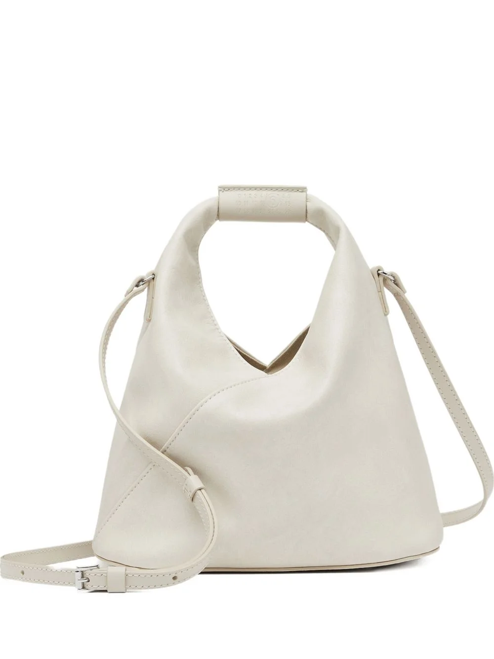 origami-style tote bag Highlights - White - Button detailing - Embossed numeric artwork - Top handle - Detachable shoulder strap - Origami-inspired Imported Composition Outer: Polyurethane 100% SIZE & FIT Measurement DEPTH 4.33 in(11 cm) HANDLE 3.14 in(8 cm) HEIGHT 9.05 in(23 cm) WIDTH 8.26 in(21 cm)