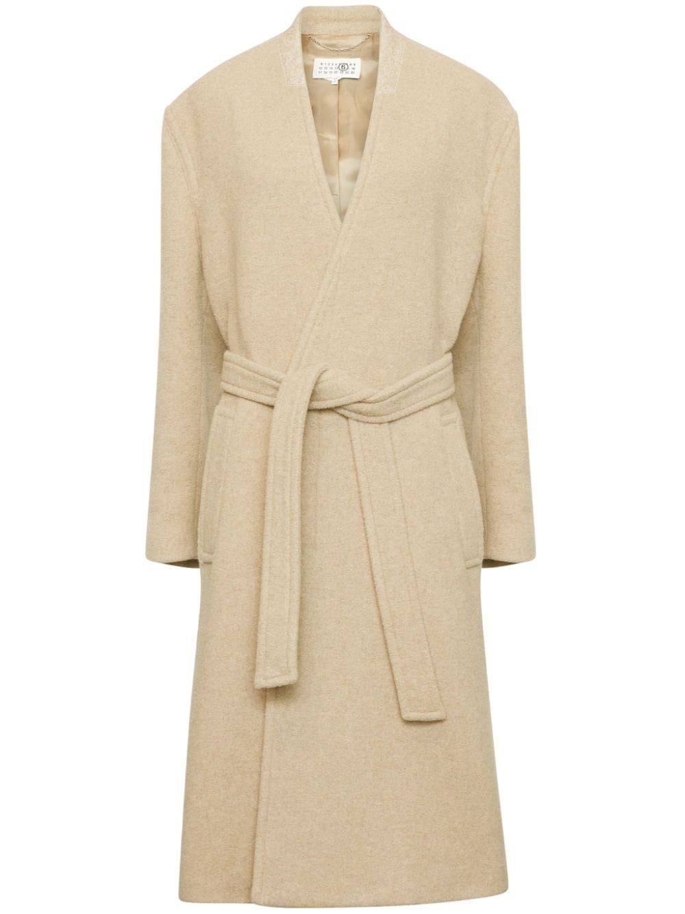 oversized pile coat Highlights - Beige - Wool blend - Short pile design - V-neck - Drop shoulder - Front button fastening - Belted waist - Long sleeves - Two diagonal pockets to the sides - Rear slit Made in Italy Composition Wool 50%, Acrylic 25%, Fabric 25%