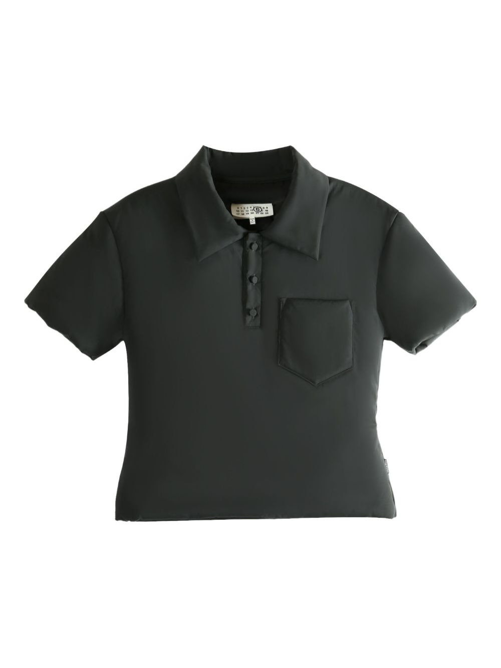 padded polo shirt Highlights - Black - Short sleeves - Padded shoulders - Polo collar - Button fastening - Chest pocket Imported Composition Polyester 100% Washing instructions Read Manufacturer Guidelines