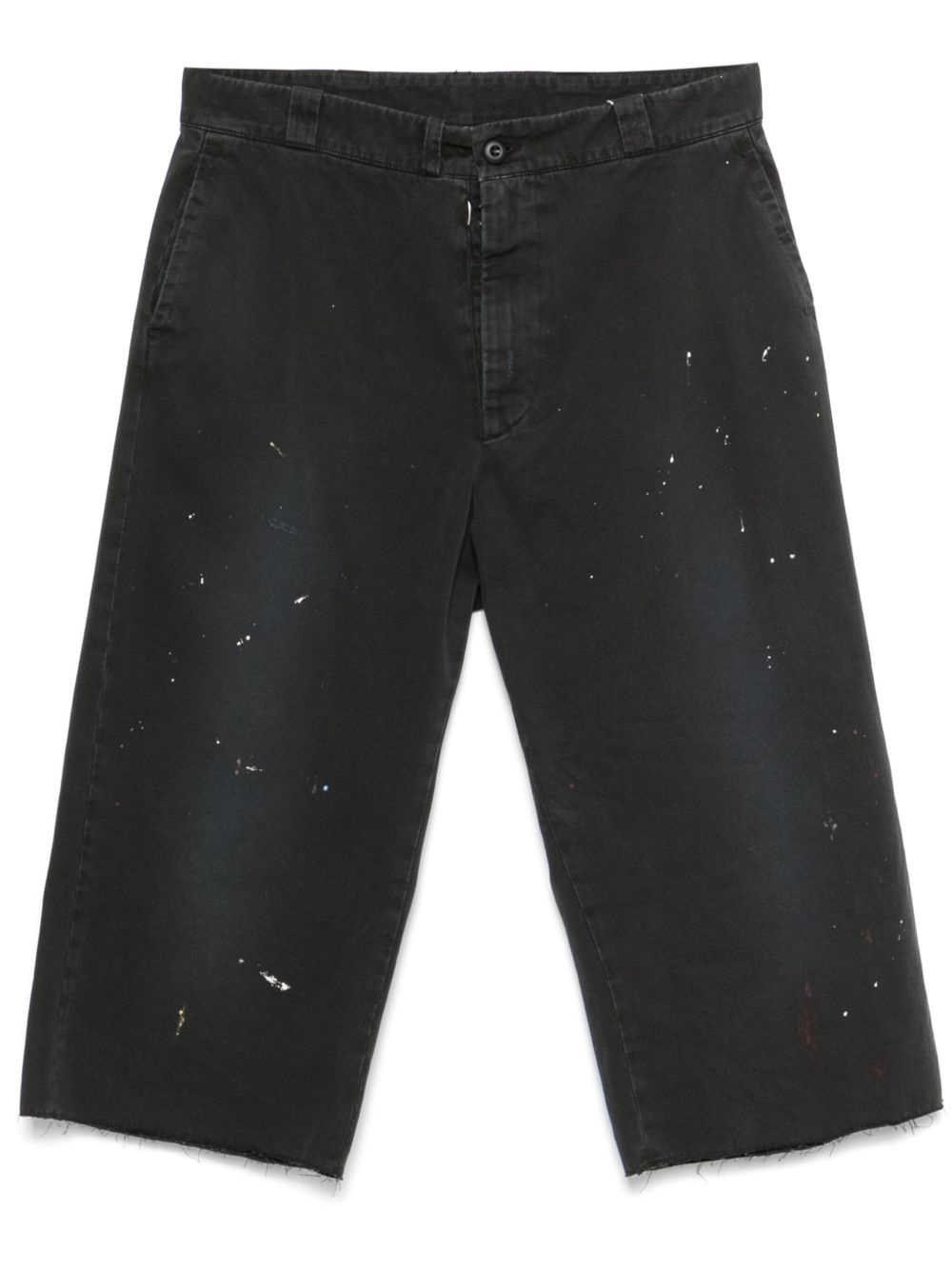 paint splatter-detail shorts Highlights - Black - Concealed fly and button fastening - Belt loops - Two side slit pockets - Rear welt pocket Made in Italy Composition Outer: Cotton 100% Lining: Cotton 100% SIZE & FIT Model measurements Height 6 ft 1 in(1.85 m) Bust/Chest 38.58 in(98 cm) Hips 37 in(94 cm) Waist 30.31 in(77 cm) FittingInformation Designed with a wide leg, offering a loose and roomy fit Made from a midweight non-stretch fabric Washing instructions Machine Wash