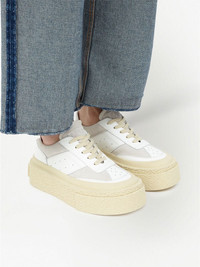 chunky flatform sneakers Highlights - Panelled low-top sneakers from mm6 maison margiela featuring white, beige, panelled design, perforated detailing, branded insole, almond toe, front lace-up fastening and chunky rubber sole. Made in Italy Composition Outer: Elastane 100%, PBV 100% Lining: Elastane 100%, PBV 100% Sole: PBV 100% SIZE & FIT FittingInformation This piece fits large – take one size down Measurement Sole height 1.96 in(5 cm)