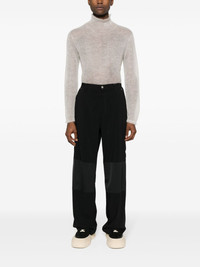 panelled straight-leg cargo trousers Highlights - Black - Stretch-design - Signature single-stitch logo - Panel detailing - Belt loops - High-waisted - Straight leg - Front button fastening - Two side slash pockets - Side zip-fastening pocket - Rear patch pocket Made in Italy Composition Outer: Polyester 96%, Elastane 4% Lining: Viscose 100% SIZE & FIT Model measurements Height 6 ft 2 in(1.88 m) Bust/Chest 36.61 in(93 cm) Hips 35.82 in(91 cm) Waist 27.95 in(71 cm) FittingInformation Designed for a straight-leg, allowing for an unrestricted and comfortable fit over the leg Made from a midweight non-stretch fabric This piece fits true to size – take your usual size