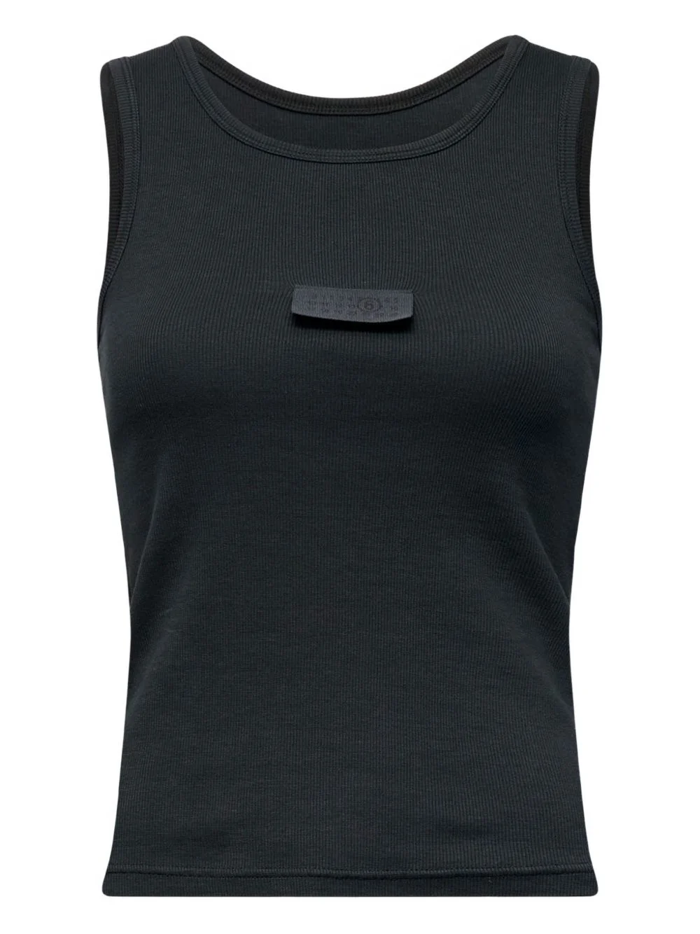 plaque tank top Highlights - Black - Ribbed texture - Plaque detail - Round neck - Sleeveless - Straight hem Made in Italy Composition Cotton 98%, Spandex/Elastane 2% Washing instructions Read Manufacturer Guidelines