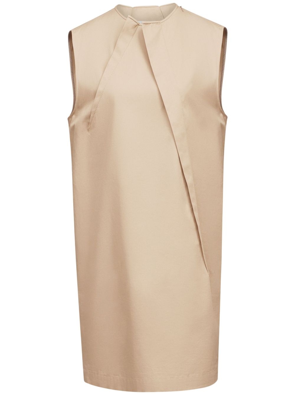 pleat-detail cap sleeved dress Highlights - Beige - Cotton - Pleat detailing - Cap sleeves - Crew neck - Straight hem - Thigh-length Imported Composition Cotton 100%