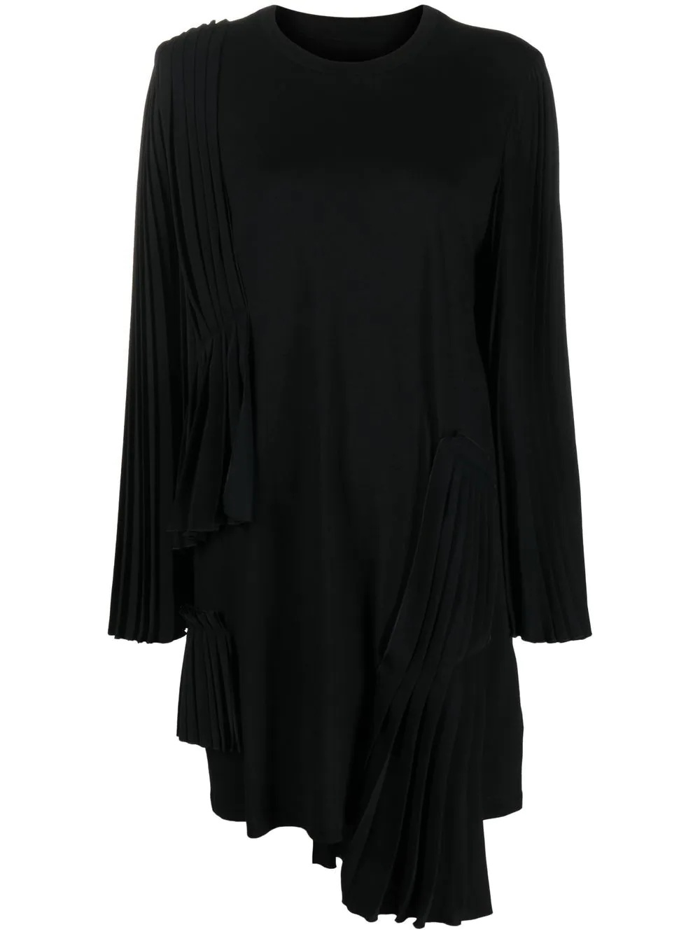 pleated asymmetric cotton dress Defined by its asymmetric silhouette, this MM6 Maison Margiela long-sleeve dress is crafted in cotton and accented with pleated panels, demonstrating the brand's unconventional style. Highlights - Black - Cotton - Pleat detailing - Round neck - Long sleeves - Asymmetric hem Made in Italy Composition Cotton 100%, Polyester 100% SIZE & FIT Model measurements Height 5 ft 11 in(1.8 m) Bust/Chest 31.49 in(80 cm) Hips 35.43 in(90 cm) Waist 25.19 in(64 cm) FittingInformation This piece fits true to size. We recommend you get your regular size Cut for a loose fit Made with a mid-weight non-stretch fabric Washing instructions Dry Clean Only