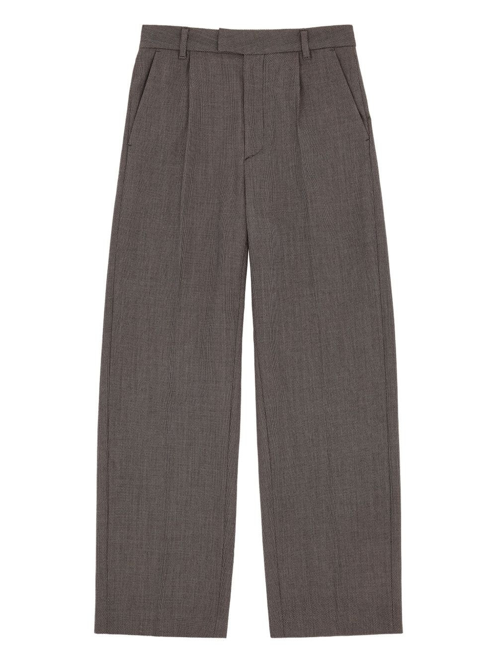 pleated herringbone trousers Highlights - Grey - Herringbone pattern - Pleated front - High waist - Side pockets Made in Italy Composition Virgin Wool 100% Washing instructions Read Manufacturer Guidelines