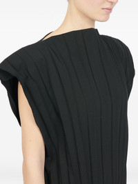 pleated sleeveless mini dress Highlights - Black - High neckline - Structured pleats - Wide armholes Made in Italy Composition Polyester 55%, Virgin Wool 45% Washing instructions Read Manufacturer Guidelines