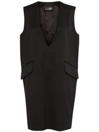 plunging v-neck mini dress Highlights - Black - Twill weave - Dart detailing - Plunging v-neck - Sleeveless - Two side flap pockets - Thigh-length - Straight hem Imported Composition Polyester 54%, Virgin Wool 44%, Spandex/Elastane 2% SIZE & FIT Measurement HIPS 40.94 in(104 cm) LENGTH 34.25 in(87 cm) WAIST 40.94 in(104 cm) BUST 36.22 in(92 cm)